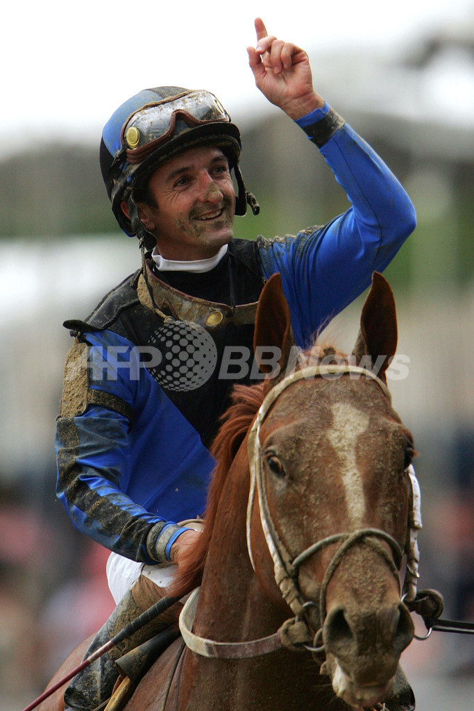 【ボルティモア/米国 19日 AFP】競馬、米国3冠レースの第2冠、第132回プリークネス・ステークス(132nd Preakness Stakes:米国G1)がピムリコ競馬場(Pimlico Race Course)の芝1と3/16マイル(約1900メートル)で3歳馬9頭が出走し、第133回ケンタッキーダービー(133rd Kentucky Derby)で3位に入賞したロビー・アルバラード(Robby Albarado)騎手が騎乗するカーリン(Curlin)が1分53秒46で優勝を飾った。(c)AFP/Getty Images Chris McGrath