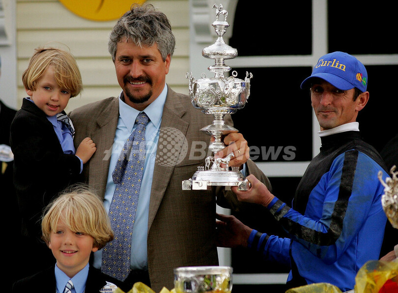 【ボルティモア/米国 19日 AFP】競馬、第132回プリークネス・ステークス(132nd Preakness Stakes)。ロビー・アルバラード(Robby Albarado)騎手が騎乗するカーリン(Curlin)は、2着のストリートセンス(Street Sense)にアタマ差をつけ1分53秒46で優勝を飾った。3着にはハードスパン(Hard Spun)が入った。