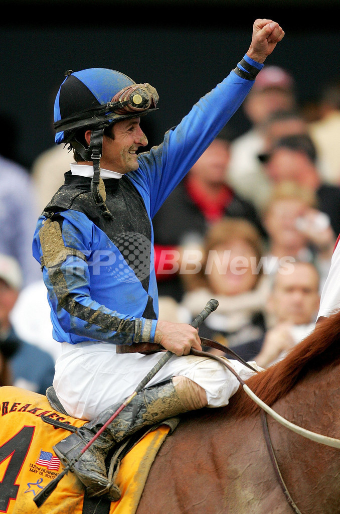 【ボルティモア/米国 19日 AFP】競馬、第132回プリークネス・ステークス(132nd Preakness Stakes)。ロビー・アルバラード(Robby Albarado)騎手が騎乗するカーリン(Curlin)は、2着のストリートセンス(Street Sense)にアタマ差をつけ1分53秒46で優勝を飾った。3着にはハードスパン(Hard Spun)が入った。