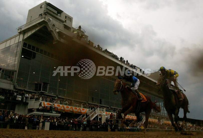 【ボルティモア/米国 19日 AFP】競馬、第132回プリークネス・ステークス(132nd Preakness Stakes)。ロビー・アルバラード(Robby Albarado)騎手が騎乗するカーリン(Curlin)は、2着のストリートセンス(Street Sense)にアタマ差をつけ1分53秒46で優勝を飾った。3着にはハードスパン(Hard Spun)が入った。