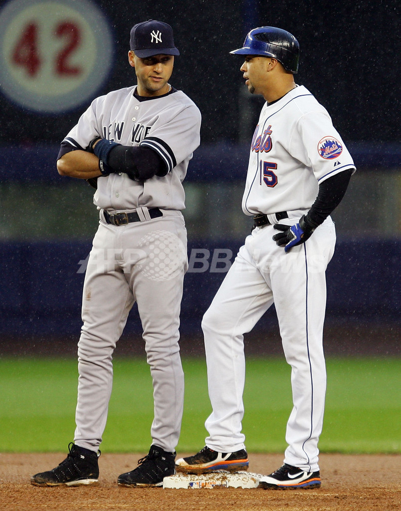 スポーツ 野球 <07MLB>メッツ 10-7でヤンキースに勝利し4連勝 - 米国 2007年5月20日 9:16 発信地:米国 [ 北米 米国 ] このニュースをシェア ‹ › ❮ 10/30 ❯ 写真は、ヤンキースのデレク・ジーター(%%Derek Jeter%%)と言葉を交わすメッツのカルロス・ベルトラン(%%Carlos Beltran%%、右)。(c)AFP/Getty Images Jim McIsaac 画像作成中 ! 【ニューヨーク 19日 AFP】07MLB、ニューヨーク・メッツ(New York Mets)vsニューヨーク・ヤンキース(New York Yankees)。メッツのエンディ・チャベス(Endy Chavez)は、2番・左翼で出場し、5打数2安打1打点を記録した。試合はメッツが10-7でヤンキースに勝利し、4連勝を飾った。(c)AFP/Getty Images Jim McIsaac 野球 一覧へ> メディア・報道関係・法人の方向け 写真・動画 購入のお問合せ>