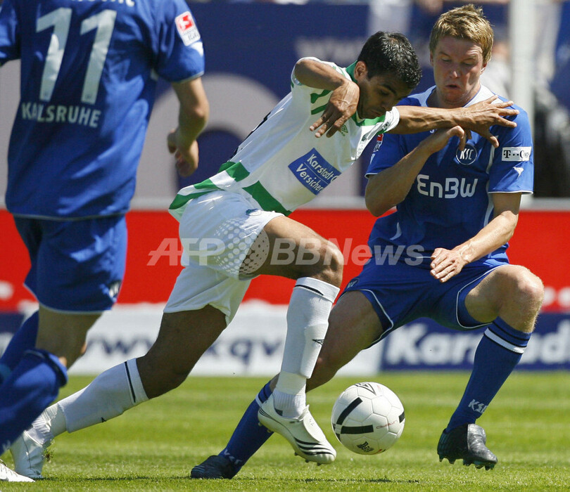 【フュルト/ドイツ 21日 AFP】サッカー、ドイツ・ブンデスリーガ2部・最終第34節、SpVggグロイター・フュルト(SpVgg Greuther Fuerth)vsカールスルーエSC(Karlsruher SC)。カールスルーエのジョヴァンニ・フェデリコ(Giovanni Federico)は、この試合でハットトリック(後半19分、21分、44分)を達成しチームを勝利に導く。試合は既に優勝を決め1部昇格を果たしているカールスルーエが3-1で勝利し、21勝6敗7分けでシーズンを終えた。(c)AFP/DDP/TIMM SCHAMBERGER