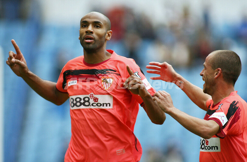 【コルーニャ/スペイン 21日 AFP】サッカー、スペイン・リーガエスパニョーラ1部・第35節、デポルティボ・ラ・コルーニャ(Deportivo La Coruna)vsセビージャ(Sevilla)。試合は後半38分にフレデリック・カヌーテ(Frederic Kanoute)のゴールで勝ち越したセビージャが2-1で逆転勝利を収め、シーズン20勝目を挙げて勝ち点を67に伸ばし優勝戦線に踏み止まった。写真は、得点の喜びを表すカヌーテ。(c)AFP/IAGO LOPEZ