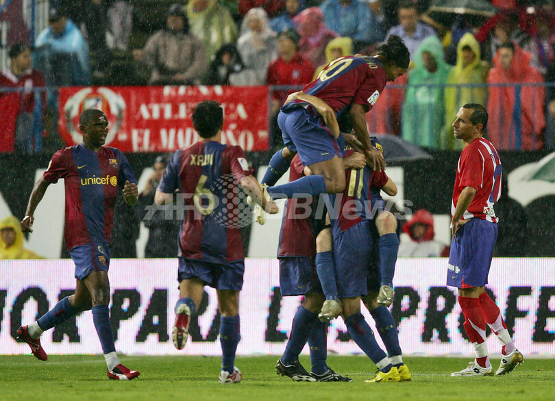 【マドリード/スペイン 21日 AFP】サッカー、スペイン・リーガエスパニョーラ1部・第35節、アトレティコ・マドリード(Atletico de Madrid)vsバルセロナ(Barcelona)。バルセロナのリオネル・メッシ(Lionel Messi)は2得点(前半39分、後半35分)を挙げる活躍でチームの勝利に貢献した。試合はバルセロナが6-0でアトレティコ・マドリードを降し、勝ち点を69に伸ばしリーグ2位をキープした。(c)AFP/BRU GARCIA