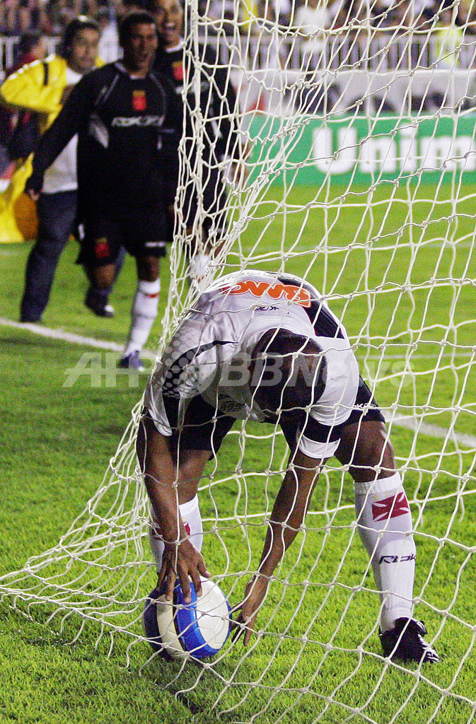 【リオデジャネイロ/ブラジル 21日 AFP】サッカー、07ブラジル全国選手権(Campeonato Brasileiro 2007)・第2節、バスコ・ダ・ガマ(Vasco da Gama)vsスポルチ・レシフェ(Sport Club do Recife)。バスコ・ダ・ガマのロマーリオ(Romario)は、後半3分にチーム3点目となるPKを決めて、自身通算1000得点を記録した。試合は3-1でバスコ・ダ・ガマが勝利を収めた。(c)AFP/SERGIO SILVA