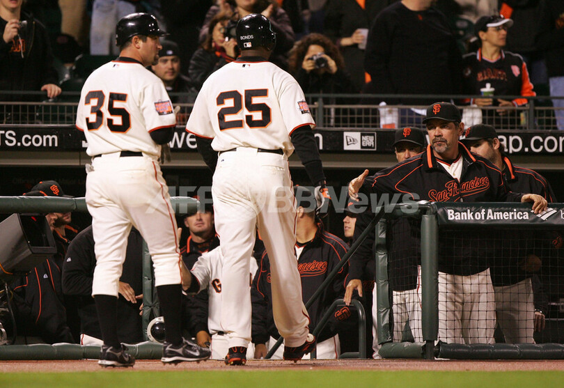 スポーツ 野球 ジャイアンツ アストロズを降し2連勝 2007年5月22日 13:42 発信地:サンフランシスコ/米国 [ 北米 米国 ] このニュースをシェア ‹ › ❮ 3/8 ❯ ベンチでブルース・ボウチー(%%Bruce Bochy%%)監督に出迎えられるジャイアンツのリッチ・オーリリア(%%Rich Aurilia%%)とバリー・ボンズ(%%Barry Bonds%%)。(c)AFP/Getty Images Jed Jacobsohn 画像作成中 ! 【5月22日 AFP】MLB、サンフランシスコ・ジャイアンツ(San Francisco Giants)vsヒューストン・アストロズ(Houston Astros)。試合はジャイアンツが4-0でアストロズに快勝した。(c)AFP/Getty Images 野球 一覧へ> メディア・報道関係・法人の方向け 写真・動画 購入のお問合せ>