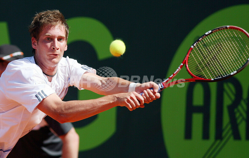 【5月24日 AFP】男子テニス、ARAGワールド・チーム・カップ2007(ARAG World Team Cup 2007)・ブルーグループ、スペインvsドイツ。スペインのニコラス・アルマグロ(Nicolas Almagro)は、第2試合のシングルスでドイツのフロリアン・マイヤー(Florian Mayer)と対戦。アルマグロは2-0(6-4、6-4)のストレートでマイヤーを降し、スペインは2連勝でドイツから勝利を収めた。これでスペインは、グループ成績を1勝1敗とした。(c)AFP