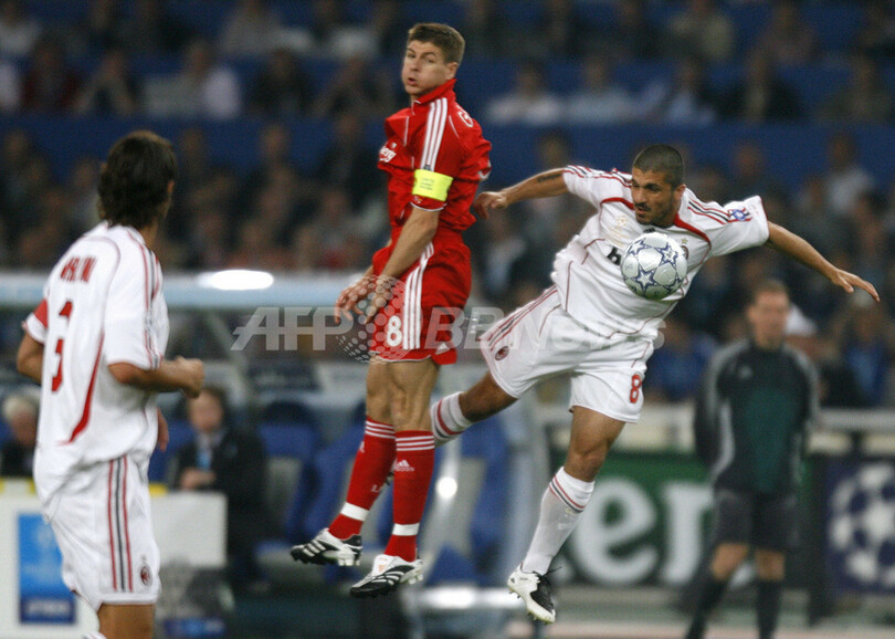 スポーツ サッカー <サッカー 欧州チャンピオンズリーグ>ミラン リバプールを破り4季ぶりの優勝を飾る 2007年5月24日 5:32 発信地:アテネ/ギリシャ [ ヨーロッパ ギリシャ ] このニュースをシェア ‹ › ❮ 21/22 ❯ ミランのジェンナロ・ガットゥーゾ(%%Gennaro Gattuso%%)とハイボールを競るリバプールのスティーブン・ジェラード(%%Steven Gerrard%%)。(c)AFP/OLIVIER MORIN 画像作成中 ! 【5月24日 AFP】サッカー、欧州チャンピオンズリーグ(Champions League)・決勝、ACミラン(AC Milan)vsリバプール(Liverpool)。試合はミランが2-1で勝利を収め、2002-2003シーズン以来4シーズンぶり通算7度目となる優勝を飾った。(c)AFP/MUSTAFA OZER サッカー 一覧へ> メディア・報道関係・法人の方向け 写真・動画 購入のお問合せ>
