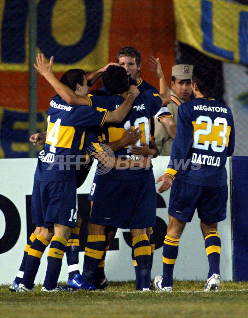 スポーツ サッカー ボカ・ジュニアーズ 07リベルタドーレス杯南米選手権・準決勝進出を決める 2007年5月25日 16:33 発信地:アスンシオン/パラグアイ [ 中南米 パラグアイ ] このニュースをシェア ‹ › ❮ 3/7 ❯ 後半17分にファン・ロマン・リケルメ(%%Juan Roman Riquelme%%)が挙げた先制ゴールを喜ぶボカ・ジュニアーズの選手たち。(c)AFP/DANIEL DUARTE 画像作成中 ! 【5月25日 AFP】サッカー、リベルタドーレス杯南米選手権2007(Copa Libertadores de America 2007)・準々決勝、リベルタ(Libertad、パラグアイ)vsボカ・ジュニアーズ(Boca Juniors、アルゼンチン)、第2戦。試合はボカ・ジュニアーズが2-0でリベルタに勝利し、2試合合計スコアを3-1として準決勝進出を決めた。(c)AFP サッカー 一覧へ> メディア・報道関係・法人の方向け 写真・動画 購入のお問合せ>