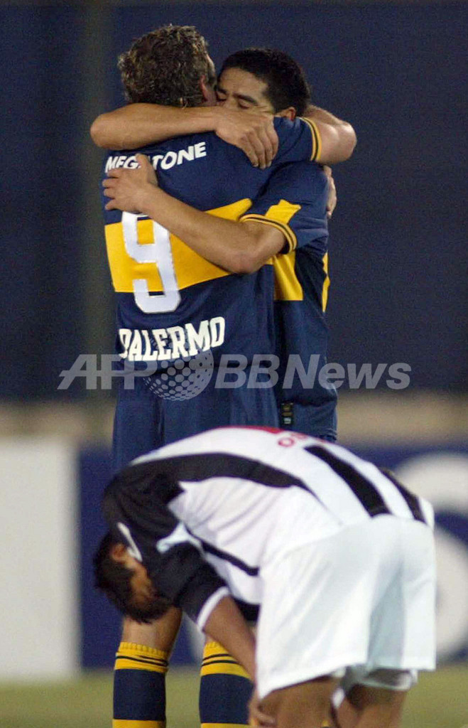 スポーツ サッカー ボカ・ジュニアーズ 07リベルタドーレス杯南米選手権・準決勝進出を決める 2007年5月25日 16:33 発信地:アスンシオン/パラグアイ [ 中南米 パラグアイ ] このニュースをシェア ‹ › ❮ 5/7 ❯ チームメイトのマルティン・パレルモ(%%Martin Palermo%%、左)と抱擁を交わし勝利を喜ぶファン・ロマン・リケルメ(%%Juan Roman Riquelme%%、右)。(c)AFP/Daniel DUARTE 画像作成中 ! 【5月25日 AFP】サッカー、リベルタドーレス杯南米選手権2007(Copa Libertadores de America 2007)・準々決勝、リベルタ(Libertad、パラグアイ)vsボカ・ジュニアーズ(Boca Juniors、アルゼンチン)、第2戦。試合はボカ・ジュニアーズが2-0でリベルタに勝利し、2試合合計スコアを3-1として準決勝進出を決めた。(c)AFP サッカー 一覧へ> メディア・報道関係・法人の方向け 写真・動画 購入のお問合せ>
