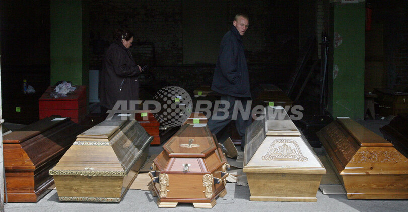 ニュース 社会 シベリア炭鉱のメタンガス爆発、犠牲者38人の遺体回収 2007年5月25日 22:55 発信地:ノボクズネツク/ロシア [ ロシア・CIS ロシア ] このニュースをシェア ‹ › ❮ 3/4 ❯ 2007年4月25日、ロシアのシベリア(%%Siberia%%)地方西部ケメロボ(%%Kemerovo%%)州のノボクズネツク(%%Novokuznetsk%%)市近郊にあるユビレイヤナ(%%Yubileinaya%%)炭鉱で前日発生した事故の犠牲者の棺。(c)AFP/YURI YURIYEV 画像作成中 ! 【5月25日 AFP】シベリアの炭鉱で24日に発生したメタンガスの爆発事故で、犠牲者38人の遺体が回収された。事故は、首都モスクワから東方に3000キロ離れたシベリア地方西部ケメロボ(Kemerovo)州のノボクズネツク(Novokuznetsk)市近郊にあるユビレイヤナ(Yubileinaya)炭鉱で発生した。ロシアでは炭鉱災害が頻発している。 社会 一覧へ> メディア・報道関係・法人の方向け 写真・動画 購入のお問合せ>