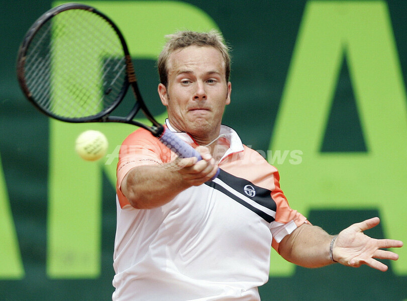 【5月26日 AFP】男子テニス、ARAGワールド・チーム・カップ2007(ARAG World Team Cup 2007)・ブルーグループ、ベルギーvsスペイン。スペインのダビド・フェレール(David Ferrer)は第1試合・シングルスでベルギーのオリビエ・ロクス(Olivier Rochus)と対戦。フェレールはセットカウント2-0(6-3、6-4)のストレートで勝利を収めた。スペインは通算成績を2勝1敗としてグループ2位に、また敗れたベルギーは0勝3敗でグループ4位に終わった。c)AFP