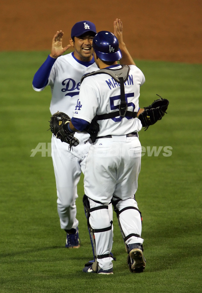 スポーツ 野球 斉藤隆 今季15セーブ目を挙げる 2007年5月26日 19:23 発信地:ロサンジェルス/米国 [ 北米 米国 ] このニュースをシェア ‹ › ❮ 4/4 ❯ カブス打線を抑えチームメイトのラッセル・マーティン(%%Russell Martin%%)と喜ぶ斉藤隆。(c)AFP/Getty Images Jeff Gross 画像作成中 ! 【5月26日 AFP】07MLB、ロサンゼルス・ドジャース(Los Angeles Dodgers)vsシカゴ・カブス(Chicago Cubs)。9回から登板したドジャースの守護神・斉藤隆(Takashi Saito)は、1回を無安打無失点に抑えて今季15セーブ目を挙げた。試合はドジャースが9-8でカブスに勝利し、3連勝を飾った。(c)AFP/Getty Images 野球 一覧へ> メディア・報道関係・法人の方向け 写真・動画 購入のお問合せ>