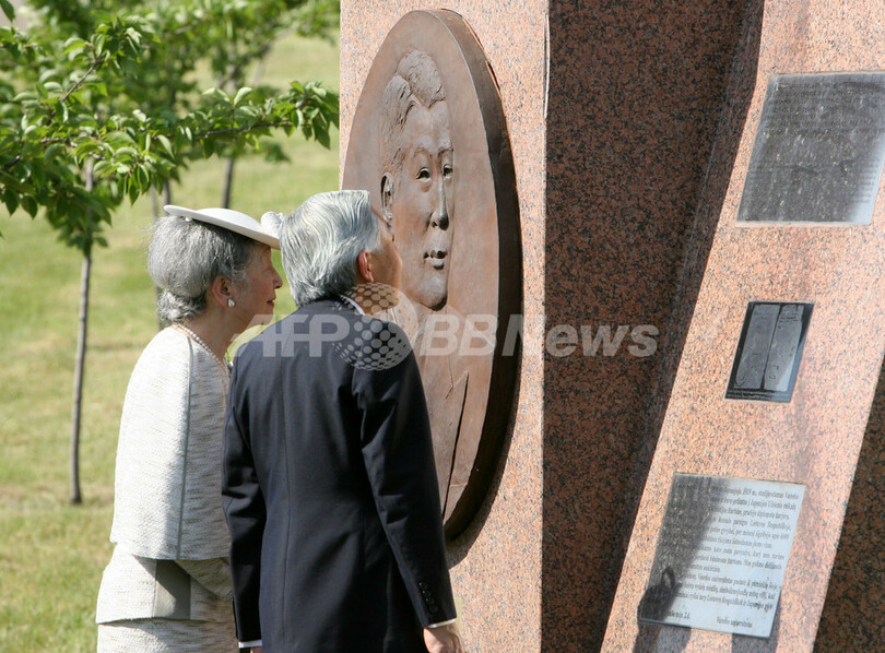 天皇陛下は杉原千畝記念館にも立ち寄られた。故杉原氏は第2次世界大戦中、数千人のポーランド人、リトアニア人、ドイツ系ユダヤ人がナチス(Nazi)の占領下から逃れられるよう、日本政府の指示に背いてビザを発給した人物で、生前は南部の都市カウナス(Kaunas)で外交官として任務に当たっていた。(c)AFP/Arturas Racas