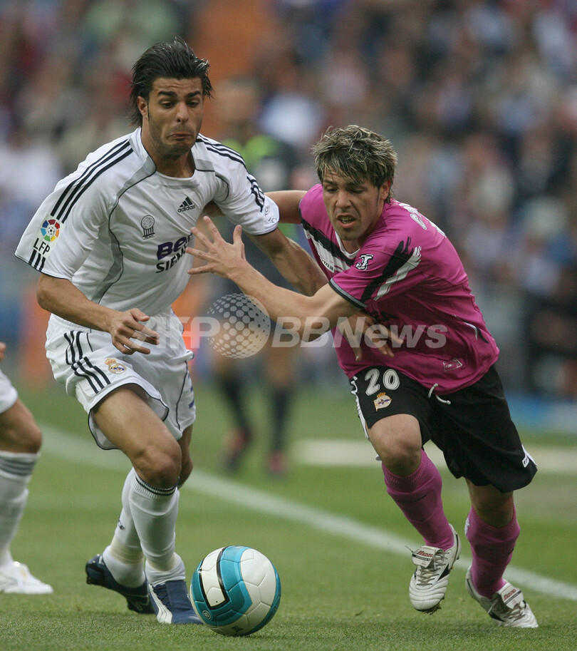 スポーツ サッカー 首位レアル・マドリード デポルティボを降し6連勝 2007年5月27日 6:07 発信地:マドリード/スペイン [ ヨーロッパ スペイン ] このニュースをシェア ‹ › ❮ 6/11 ❯ デポルティボのクリスティアン・イダルゴ(%%Cristian Hidalgo%%、右)と競り合うレアル・マドリードのミゲル・トレス(%%Miguel Torres%%)。(c)AFP/Pedro ARMESTRE 画像作成中 ! 【5月27日 AFP】サッカー、スペイン・リーガエスパニョーラ1部・第36節、レアル・マドリード(Real Madrid)vsデポルティボ・ラ・コルーニャ(Deportivo La Coruna)。試合はレアル・マドリードが3-1で勝利を収め、6連勝で勝ち点を72に伸ばし首位をキープした。(c)AFP サッカー 一覧へ> メディア・報道関係・法人の方向け 写真・動画 購入のお問合せ>