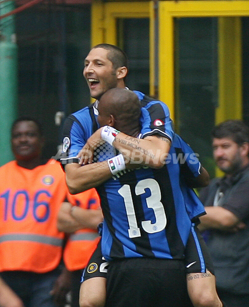 スポーツ サッカー インテル 最終節を白星で飾り勝ち点97でシーズンを終える 2007年5月28日 2:55 発信地:ミラノ/イタリア [ ヨーロッパ イタリア ] このニュースをシェア ‹ › ❮ 3/12 ❯ 今季10得点目をPKでマークしダグラス・マイコン(%%Douglas Maicon%%、手前)と抱擁を交わすインテルのマルコ・マテラッツィ(%%Marco Materazzi%%)。(c)AFP/GIUSEPPE CACACE 画像作成中 ! 【5月28日 AFP】サッカー、イタリア・セリエA・最終第38節、インテル(Inter Milan)vsトリノ(Torino FC)。試合は既に第33節で通算15度目のリーグ優勝を決めているインテルが3-0で快勝し、通算30勝1敗7分けの勝ち点97でシーズンを終えた。(c)AFP サッカー 一覧へ> メディア・報道関係・法人の方向け 写真・動画 購入のお問合せ>