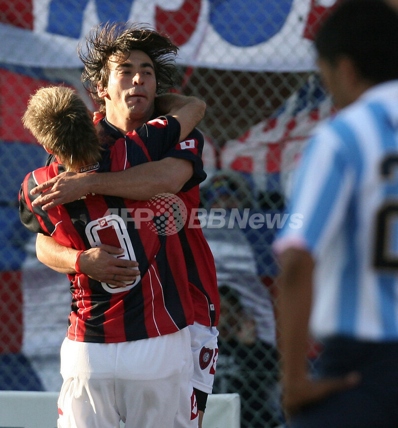 スポーツ サッカー サン・ロレンソ ラシン・クラブを降し首位をキープ 2007年5月28日 6:35 発信地:ブエノスアイレス/アルゼンチン [ 中南米 アルゼンチン ] このニュースをシェア ‹ › ❮ 5/5 ❯ 前半7分に先制ゴールを決めチームメイトのエセキエル・ラベッツィ(%%Ezequiel Lavezzi%%、奥)から祝福を受けるサン・ロレンソのガストン・フェルナンデス(%%Gaston Fernandez%%)。(c)AFP/Alejandro PAGNI 画像作成中 ! 【5月28日 AFP】サッカー、アルゼンチン後期リーグ・第16節、サン・ロレンソ(San Lorenzo)vsラシン・クラブ(Racing Club)。試合はサン・ロレンソが3-0でラシン・クラブを降し、勝ち点を38に伸ばし首位とキープした。(c)AFP サッカー 一覧へ> メディア・報道関係・法人の方向け 写真・動画 購入のお問合せ>