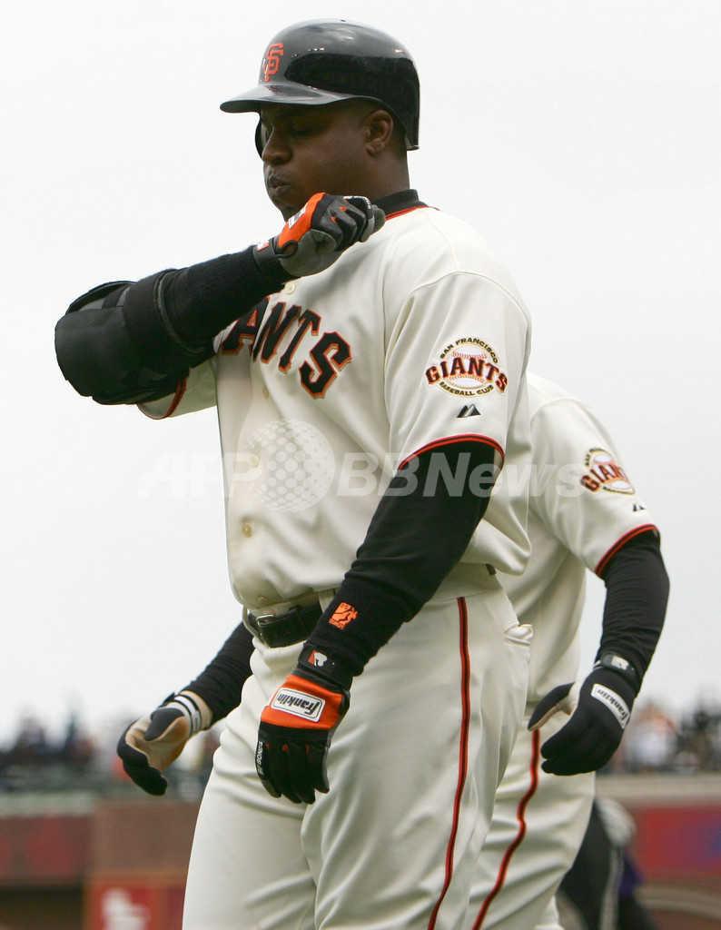 ボンズは、前トレーナーがBALCO社(Bay Area Laboratory Co-operative)のステロイドスキャンダルで有罪判決を受けた5人の中に含まれており、ドーピングの物議が途絶えることが無い。ボンズは意図的な運動能力向上薬の使用を否定し続けているが、偽証罪と欺罪で連邦当局から調査を受けている。(c)AFP