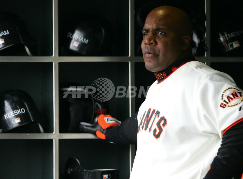 ボンズは、前トレーナーがBALCO社(Bay Area Laboratory Co-operative)のステロイドスキャンダルで有罪判決を受けた5人の中に含まれており、ドーピングの物議が途絶えることが無い。ボンズは意図的な運動能力向上薬の使用を否定し続けているが、偽証罪と欺罪で連邦当局から調査を受けている。(c)AFP