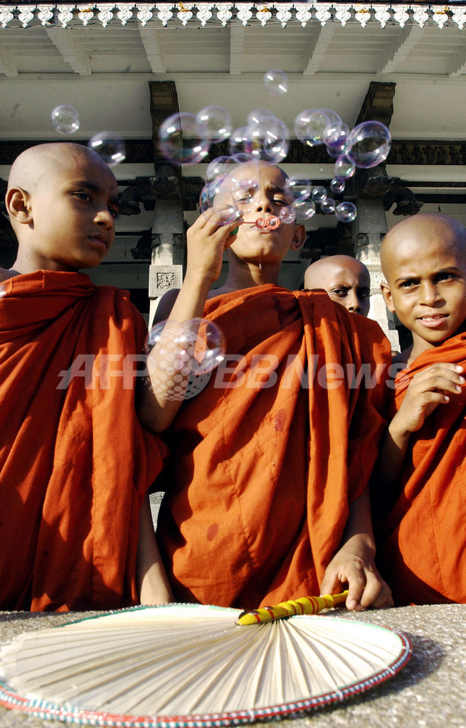 ニュース ライフ こぼれ話 僧侶不足で若者の参加うながすキャンペーンを開始 2007年5月29日 9:37 発信地:コロンボ/スリランカ [ アジア・オセアニア スリランカ ] このニュースをシェア ‹ › ❮ 6/6 ❯ 2007年5月28日、コロンボ(%%Colombo%%)で、式典中にしゃぼん玉を吹く若い僧。(c)AFP/Sanka VIDANAGAMA 画像作成中 ! 【5月29日 AFP】コロンボ(Colombo)で26日、大規模な式典が行われ100人を超える若者が得度した。国民の大多数が仏教徒であるスリランカでは僧侶が不足しており、若者の参加をうながすキャンペーンが開始されている。(c)AFP ライフ 一覧へ> メディア・報道関係・法人の方向け 写真・動画 購入のお問合せ>