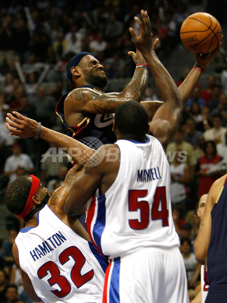 一方、2季ぶりのNBAファイナル進出に向けて窮地へ追い込まれたピストンズは、リチャード・ハミルトン(Richard Hamilton)が26得点、クリス・ウェバー(Chris Webber)が20得点を記録したが、この敗戦には首を振るしかなかった。また21得点を挙げたチャウンシー・ビラップス(Chauncey Billups)までも「信じられない。(ジェームズは)キレていたね。ダンクやレイアップ、そして(107-107に追いつく)あの3ポイントシュート。本当に信じられないようなプレーを見せた。こちらとしては彼にボールを触らせないようしていたけれど上手くかわされた。あれだけの事をやられたらもうお手上げだ」と脱帽するなど、堅守を誇るピストンズさえこの日の「キング・ジェームス」だけは止めきれなかった。(c)AFP/Getty Images