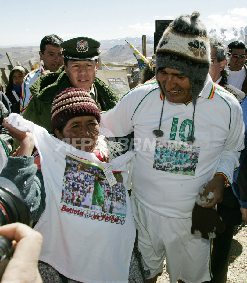 スポーツ サッカー モラレス大統領 抗議のためチャカルタヤ山でサッカー 2007年6月2日 15:38 発信地:ラパス/ボリビア [ 中南米 ボリビア ] このニュースをシェア ‹ › ❮ 2/3 ❯ アイマラ族(Aymara)の人々にTシャツをプレゼントするモラレス大統領(右)。(c)AFP/AIZAR RALDES 画像作成中 ! 【6月2日 AFP】サッカー、ボリビアのエボ・モラレス(Evo Morales)大統領は、雪で覆われたチャカルタヤ山の海抜5270メートル付近で行われたサッカーの試合に参加して、高地での試合を禁止した国際サッカー連盟(FIFA)に抗議の姿勢を見せた。モラレス大統領は国際サッカー連盟が5月27日の理事会で海抜2500メートル以上にあるスタジアムでの試合を禁止する決定を下した事に反対の姿勢を示し続けている。(c)AFP サッカー 一覧へ> メディア・報道関係・法人の方向け 写真・動画 購入のお問合せ>