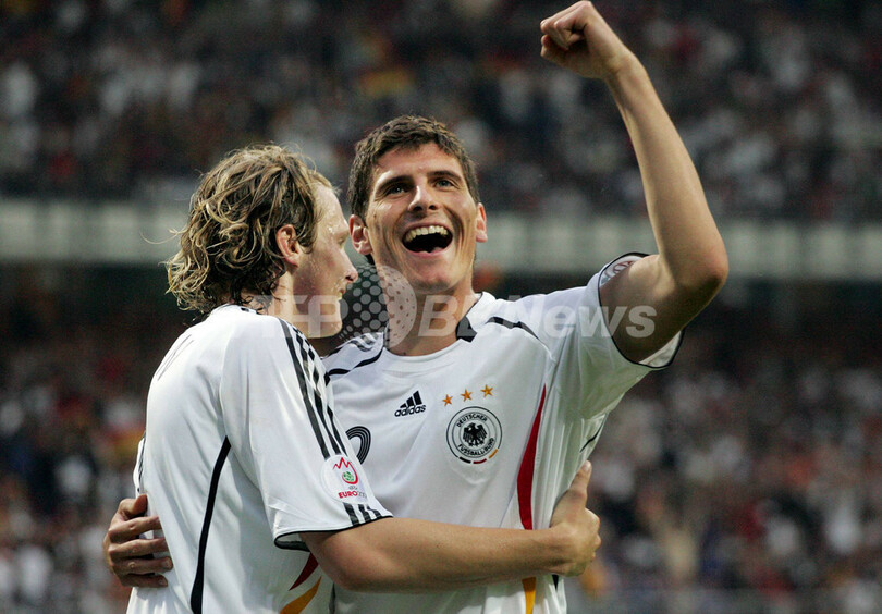 スポーツ サッカー <サッカー 欧州選手権2008・予選>ドイツ 大量6点を挙げサンマリノに完勝 2007年6月3日 6:00 発信地:ニュルンベルク/ドイツ [ ヨーロッパ ドイツ ] このニュースをシェア ‹ › ❮ 1/12 ❯ この日2得点(後半18分、同20分)を挙げたマリオ・ゴメス(%%Mario Gomez%%、右)を祝福するドイツのマルセル・ヤンセン(%%Marcell Jansen%%)。(c)AFP/THOMAS LOHNES 画像作成中 ! 【6月3日 AFP】サッカー、欧州選手権2008(Euro 2008)・予選グループD、ドイツvsサンマリノ。試合はドイツが6-0で快勝し、通算成績を5勝1分けとしてグループ首位をキープした。(c)AFP サッカー 一覧へ> メディア・報道関係・法人の方向け 写真・動画 購入のお問合せ>