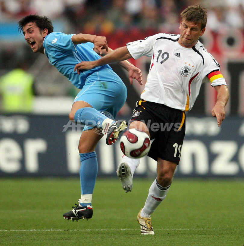 スポーツ サッカー <サッカー 欧州選手権2008・予選>ドイツ 大量6点を挙げサンマリノに完勝 2007年6月3日 6:00 発信地:ニュルンベルク/ドイツ [ ヨーロッパ ドイツ ] このニュースをシェア ‹ › ❮ 2/12 ❯ サンマリノのマッテオ・ブッリ(%%Matteo Bugli%%、左)からボールを奪うドイツのベルント・シュナイダー(%%Bernd Schneider%%)。(c)AFP/ DDP/THOMAS LOHNES 画像作成中 ! 【6月3日 AFP】サッカー、欧州選手権2008(Euro 2008)・予選グループD、ドイツvsサンマリノ。試合はドイツが6-0で快勝し、通算成績を5勝1分けとしてグループ首位をキープした。(c)AFP サッカー 一覧へ> メディア・報道関係・法人の方向け 写真・動画 購入のお問合せ>
