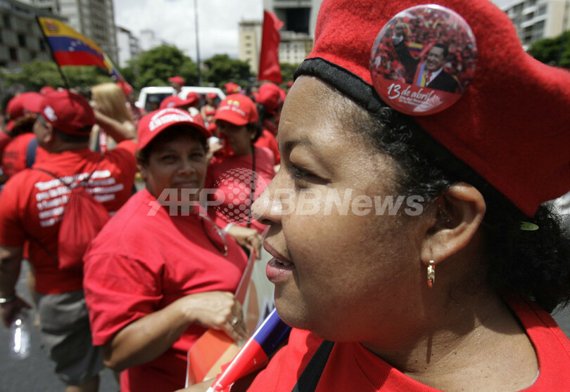 【6月3日 AFP】ウゴ・チャベス(Hugo Chavez)大統領が自身に批判的な民放テレビ局「RCTV」を放送停止に追い込んだことに対する非難が高まる中、大統領支持者が2日、首都カラカス(Caracas)で、チャベス大統領への支持を訴えるデモ行進を行った。