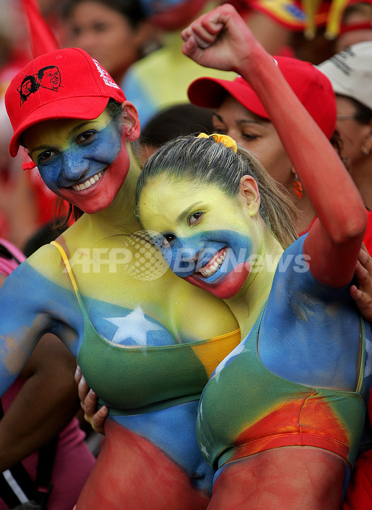 【6月3日 AFP】ウゴ・チャベス(Hugo Chavez)大統領が自身に批判的な民放テレビ局「RCTV」を放送停止に追い込んだことに対する非難が高まる中、大統領支持者が2日、首都カラカス(Caracas)で、チャベス大統領への支持を訴えるデモ行進を行った。