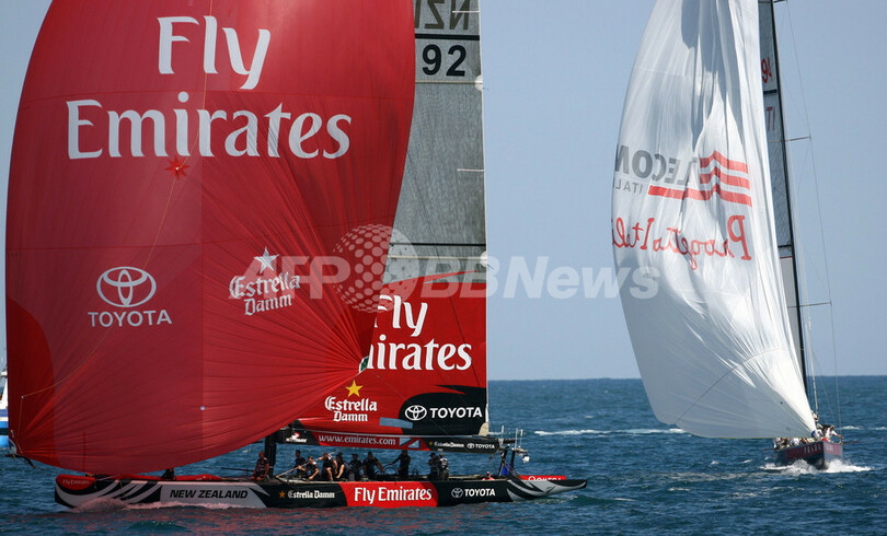 【6月4日 AFP】ヨットレース、ルイ・ヴィトン・カップ(Louis Vuitton Cup)・決勝、3日目。エミレーツ・チーム・ニュージーランド(Emirates Team New Zealand、ニュージーランド)は、ルナロッサ・チャレンジ(Luna Rossa Challenge、イタリア)と対戦。レースは1時間35分37秒を記録したエミレーツ・チーム・ニュージーランドが、1時間37分15秒を記録したルナロッサ・チャレンジに1分38秒差で勝利し、3連勝を飾った。(c)AFP