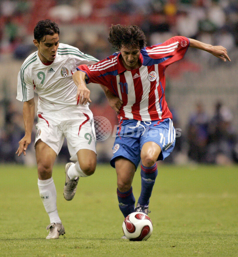 【6月6日 AFP】サッカー・親善試合、メキシコvsパラグアイ。試合はスコアレスドローのまま終わると思われた後半44分に決勝点となる先制ゴールを挙げたパラグアイが1-0でメキシコを降した。(c)AFP