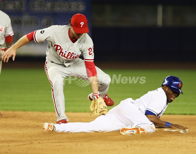 スポーツ 野球 フィリーズ メッツを延長戦の末降す 2007年6月6日 18:43 発信地:ニューヨーク/米国 [ 北米 米国 ] このニュースをシェア ‹ › ❮ 7/10 ❯ 7回に今季31個目の盗塁を成功させるメッツのホセ・レイエス(%%Jose Reyes%%、右)。(c)AFP/Getty Images Al Bello 画像作成中 ! 【6月6日 AFP】07MLB、ニューヨーク・メッツ(New York Mets)vsフィラデルフィア・フィリーズ(Philadelphia Phillies)。試合は延長戦の末、フィリーズが4-2でメッツを降した。(c)AFP/Getty Images 野球 一覧へ> メディア・報道関係・法人の方向け 写真・動画 購入のお問合せ>