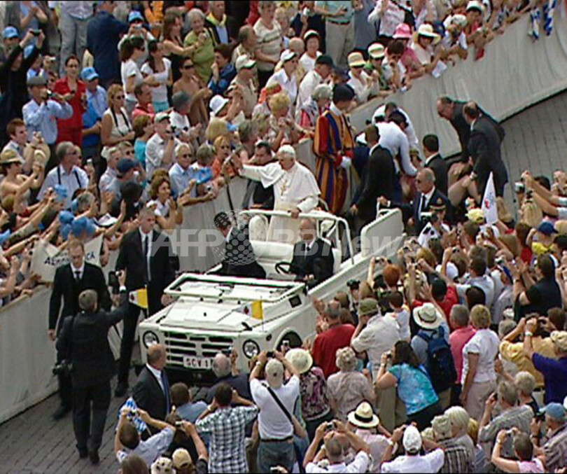 【6月7日 AFP】サンピエトロ広場(St Peter’s Square)で6日、週次の一般謁見に臨むローマ法王ベネディクト16世(Benedict XVI)が乗るの車両に男が飛び乗ろうとする事件が発生した。男は乗り込む直前にボディーガードによって取り押さえられている。