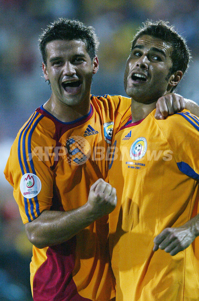スポーツ サッカー <サッカー 欧州選手権2008・予選>ルーマニア スロベニアを破りグループ首位をキープ 2007年6月7日 7:03 発信地:ティミショアラ/ルーマニア [ ヨーロッパ ルーマニア ] このニュースをシェア ‹ › ❮ 1/9 ❯ 前半40分に先制ゴールを決めたチームメイトのアドリアン・ムトゥ(%%Adrian Mutu%%、右)を祝福するルーマニアのクリスティアン・キヴ(%%Cristian Chivu%%、左)。(c)AFP/DANIEL MIHAILESCU 画像作成中 ! 【6月7日 AFP】サッカー、欧州選手権2008(Euro 2008)予選・グループG、ルーマニアvsスロベニア。試合はルーマニアが2-0で勝利を収め、通算成績を5勝2分けとして勝ち点を17に伸ばしグループ首位をキープした。(c)AFP サッカー 一覧へ> メディア・報道関係・法人の方向け 写真・動画 購入のお問合せ>
