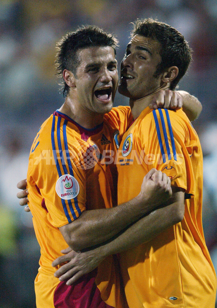 スポーツ サッカー <サッカー 欧州選手権2008・予選>ルーマニア スロベニアを破りグループ首位をキープ 2007年6月7日 7:03 発信地:ティミショアラ/ルーマニア [ ヨーロッパ ルーマニア ] このニュースをシェア ‹ › ❮ 6/9 ❯ 前半40分に先制ゴールを決めたチームメイトのアドリアン・ムトゥ(%%Adrian Mutu%%、右)を祝福するルーマニアのクリスティアン・キヴ(%%Cristian Chivu%%、左)。(c)AFP/DANIEL MIHAILESCU 画像作成中 ! 【6月7日 AFP】サッカー、欧州選手権2008(Euro 2008)予選・グループG、ルーマニアvsスロベニア。試合はルーマニアが2-0で勝利を収め、通算成績を5勝2分けとして勝ち点を17に伸ばしグループ首位をキープした。(c)AFP サッカー 一覧へ> メディア・報道関係・法人の方向け 写真・動画 購入のお問合せ>