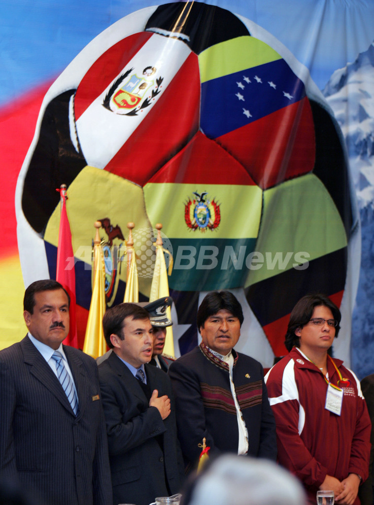 【6月7日 AFP】国際サッカー連盟(FIFA)が標高2500メートル以上の高地にあるスタジアムで行われる国際試合を禁止したことに対して反対姿勢をとる国々で組織されたサミット「Unity for the Universality of Sports Summit」がボリビアのラパスで6日に開催され、ボリビアのエボ・モラレス(Evo Morales)大統領らが出席した。FIFAの決定はラテンアメリカ諸国で大きな議論を呼んでいる。(c)AFP