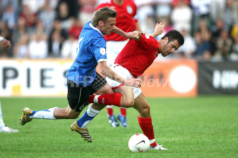 【6月7日 AFP】サッカー、欧州選手権2008(Euro 2008)・予選グループE、エストニアvsイングランド。試合はイングランドが3-0で勝利を収め、イングランドは通算成績を4勝1敗2分けとして勝ち点を14に伸ばした。