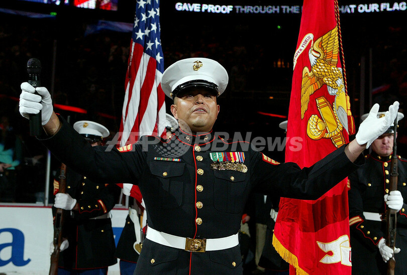 スポーツ ウインタースポーツ スタンレー杯・第5戦を前に米国海兵隊二等軍曹が国歌独唱 2007年6月7日 9:51 発信地:アナハイム/米国 [ 北米 米国 ] このニュースをシェア ‹ › ❮ 3/3 ❯ 国歌独唱を行う米国海兵隊ファン・コントレラス二等軍曹。(c)AFP/Getty Images Jim McIsaac 画像作成中 ! 【6月7日 AFP】06-07NHL、スタンレー杯(Stanley Cup 2007)、アナハイム・ダックス(Anaheim Ducks)vsオタワ・セネターズ(Ottawa Senators)、第5戦。試合前の米国国歌斉唱が、米国海兵隊ファン・コントレラス二等軍曹によって行われた。(c)AFP/Getty Images ウインタースポーツ 一覧へ> メディア・報道関係・法人の方向け 写真・動画 購入のお問合せ>