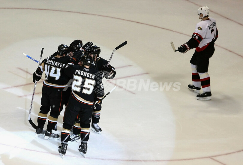 【6月7日 AFP】06-07NHL、スタンレー杯(Stanley Cup 2007)、アナハイム・ダックス(Anaheim Ducks)vsオタワ・セネターズ(Ottawa Senators)、第5戦。試合はダックスが6-2でセネターズを破り、通算成績を4勝1敗としてチーム史上初となるスタンレー杯優勝を飾った。