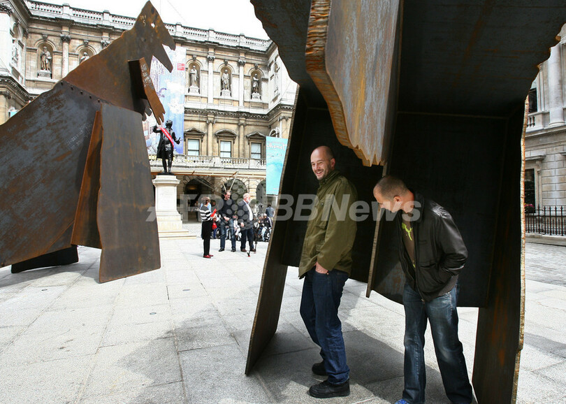 【6月8日 AFP】ロンドンの美術館ロイヤル・アカデミー・オブ・アーツ(Royal Academy of Arts)で、毎年恒例の夏季展が開催されている。有名無名を問わず国内外の多彩なアーティストの作品が出展されるこの展示会の分野は、絵画、写真、彫刻、建築など、多岐にわたる。今年の展示会では、ロンドン出身のジェイク(Jake)とディノス(Dinos)のチャップマン(Chapman)兄弟が同美術館の中庭に展示している、鉄製の恐竜のオブジェ3点などが注目を集めている。この恐竜は全長8メートル、高さ4.7メートル。「従順な動物は地上で生きる権利を受け継いだが、鉱物権は受け継がない」とのタイトルが付けられている。(c)AFP