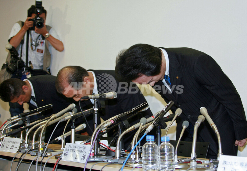 ニュース 社会 コムスンとグッドウィル・グループ幹部が初の謝罪会見 2007年6月8日 23:32 発信地:東京 [ アジア・オセアニア 東京 ] このニュースをシェア ‹ › ❮ 1/2 ❯ 2007年6月8日、都内で謝罪会見する訪問介護大手「%%コムスン%%」の%%樋口公一%%社長(中央)と親会社%%グッドウィル・グループ%%の折口雅博会長(右)。(c)AFP/Yoshikazu TSUNO 画像作成中 ! 【6月8日 AFP】介護保険制度を不正利用していた問題で訪問介護大手「コムスン」の樋口公一社長と親会社グッドウィル・グループの折口雅博会長が8日、事件発覚後はじめて謝罪会見を行った。これに先立ち厚生労働省は、介護報酬の不正請求が発覚したコムスンに対し、2011年まで介護事業所の新規指定や更新を認めないとする処分を発表している。(c)AFP 社会 一覧へ> メディア・報道関係・法人の方向け 写真・動画 購入のお問合せ>
