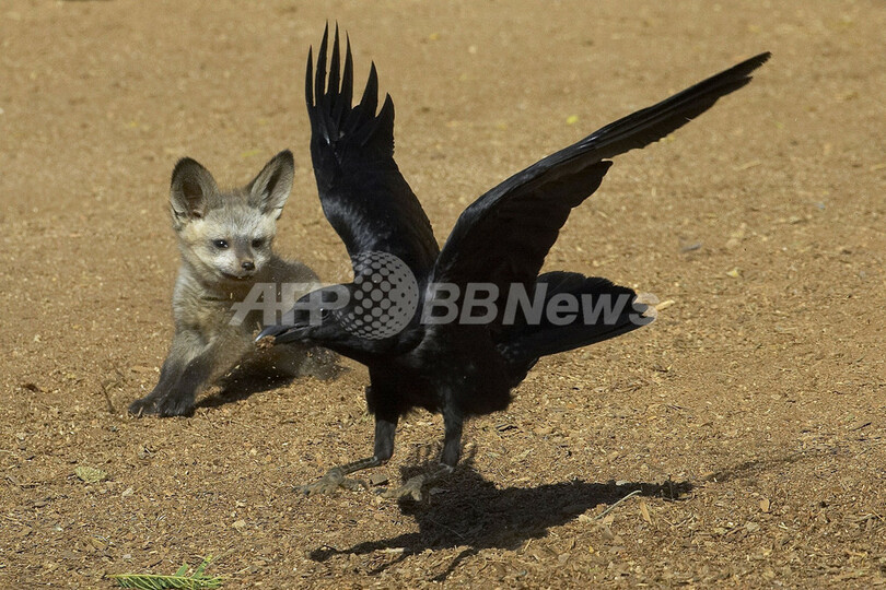 サバンナに生息するオオミミギツネの赤ちゃんが、動物園で姿を見せる