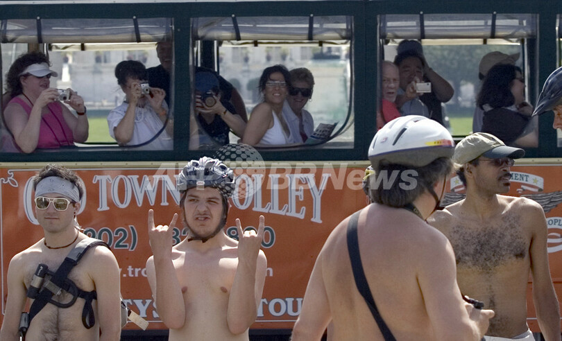 裸で自転車に乗り環境保護をアピール、「World Naked Bike Ride」開催