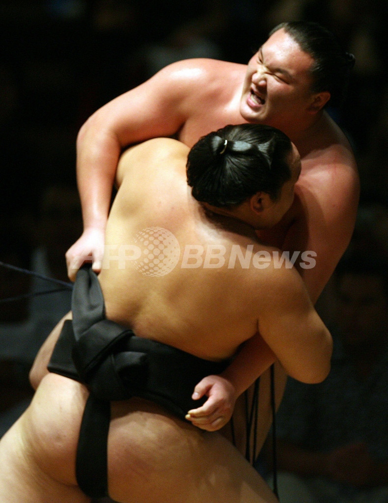 スポーツ スポーツ その他 朝青龍 白鵬を降しホノルル市長杯を制す 2007年6月10日 19:29 発信地:ハワイ/米国 [ 北米 米国 ] このニュースをシェア ‹ › ❮ 3/5 ❯ 白鵬(奥)を寄り切る朝青龍。(c)AFP/GABRIEL BOUYS 画像作成中 ! 【6月10日 AFP】大相撲・ハワイ巡業2007(Grand Sumo Tournament in Hawaii 2007)、初日。この日はホノルル市長杯(Honolulu Mayor’s Cup)と名付けられたトーナメント戦が行われ、第68代横綱・朝青龍(Asashoryu)が第69代横綱・白鵬(Hakuho)を決勝で降し、優勝を飾った。(c)AFP スポーツ その他 一覧へ> メディア・報道関係・法人の方向け 写真・動画 購入のお問合せ>