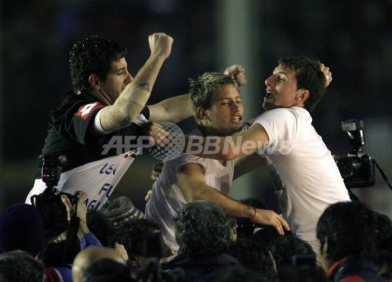 スポーツ サッカー サン・ロレンソ 10回目のリーグ優勝 2007年6月11日 11:32 発信地:ブエノスアイレス/アルゼンチン [ 中南米 アルゼンチン ] このニュースをシェア ‹ › ❮ 6/9 ❯ 優勝の喜びを分かち合うアグスティン・オリオン(%%Agustin Orion%%、左)とガストン・フェルナンデス(%%Gaston Fernandez%%、中央)。(c)AFP/JUAN MABROMATA 画像作成中 ! 【6月11日 AFP】サッカー、アルゼンチン後期リーグ・第18節、サン・ロレンソ(San Lorenzo)vsアルセナル・サランディ(Arsenal Sarandi)。試合はサン・ロレンソが4-2でアルセナルを降し、サン・ロレンソは勝ち点を42に伸ばし1試合を残し通算10回目のリーグ優勝を果たした。(c)AFP サッカー 一覧へ> メディア・報道関係・法人の方向け 写真・動画 購入のお問合せ>