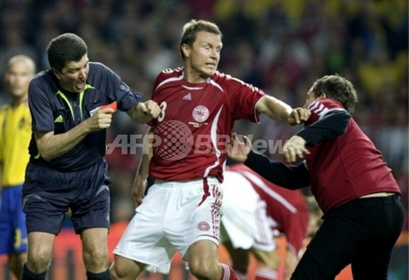 DBUは、9月12日のリヒテンシュタイン戦を無観客試合とする裁定を厳しすぎるとしてUEFAに抗議しているが、10万スイスフラン(約1000万円)の罰金と、スウェーデンのマルクス・ローゼンベリ(Markus Rosenberg)の腹部を殴って退場となり、騒動の発端を作ったクリスティアン・ポウルセン(Christian Poulsen)に対する3試合の出場停止処分には抗議しないことを表明している。(c)AFP
