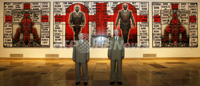 【6月22日 AFP】ドイツ・ミュンヘン(Munich)の美術館、Haus der Kunstで9月9日まで開催中の展覧会「Gilbert & George Major Exhibition」会場に10日、ギルバート・プロッシュ(Gilbert Proesch)とジョージ・パサモア(George Passmore)が姿を見せた。同展は、英・ロンドンにある美術館、テート・モダン(Tate Modern)で2月から5月にかけて行われたもので、約40年間に制作された作品を集めた回顧展となっている。(c)AFP/DDP Joerg Koch