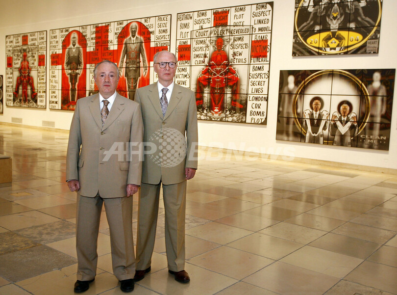 【6月22日 AFP】ドイツ・ミュンヘン(Munich)の美術館、Haus der Kunstで9月9日まで開催中の展覧会「Gilbert & George Major Exhibition」会場に10日、ギルバート・プロッシュ(Gilbert Proesch)とジョージ・パサモア(George Passmore)が姿を見せた。同展は、英・ロンドンにある美術館、テート・モダン(Tate Modern)で2月から5月にかけて行われたもので、約40年間に制作された作品を集めた回顧展となっている。(c)AFP/DDP Joerg Koch