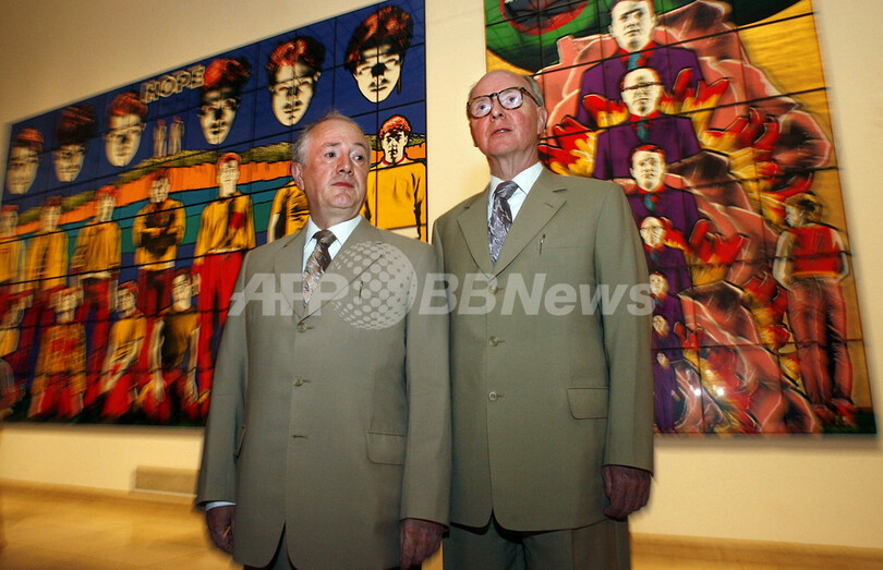 【6月22日 AFP】ドイツ・ミュンヘン(Munich)の美術館、Haus der Kunstで9月9日まで開催中の展覧会「Gilbert & George Major Exhibition」会場に10日、ギルバート・プロッシュ(Gilbert Proesch)とジョージ・パサモア(George Passmore)が姿を見せた。同展は、英・ロンドンにある美術館、テート・モダン(Tate Modern)で2月から5月にかけて行われたもので、約40年間に制作された作品を集めた回顧展となっている。(c)AFP/DDP Joerg Koch